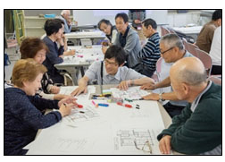 | 活動の概要 | ・防災をテーマとした交流の場「尾山台団地みんなの防災カフェ」を継続開催、「震災でも団地は倒れない」、「避難所には全員が避難できない」を前提に住民自らで課題の洗い出しと対策の立案を進めた。 |
