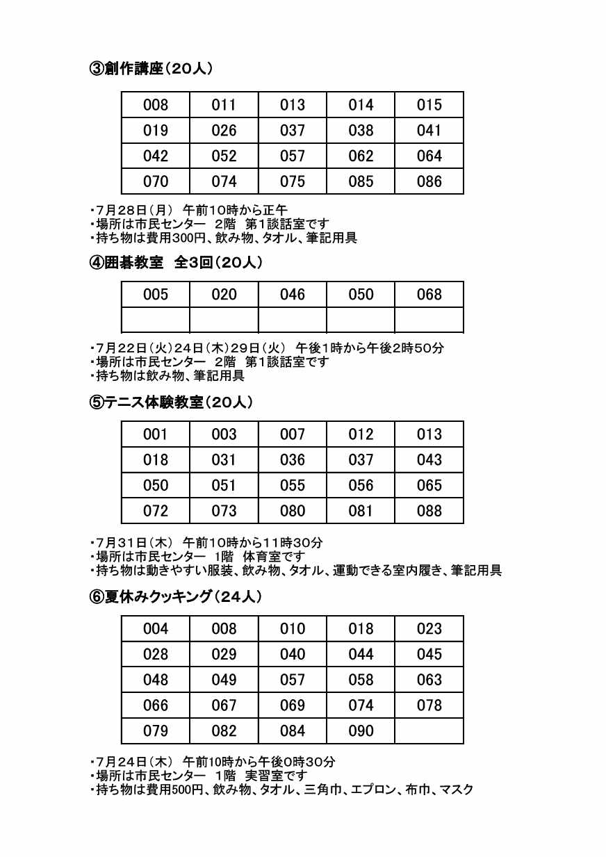 抽選結果は、下記の通りです。