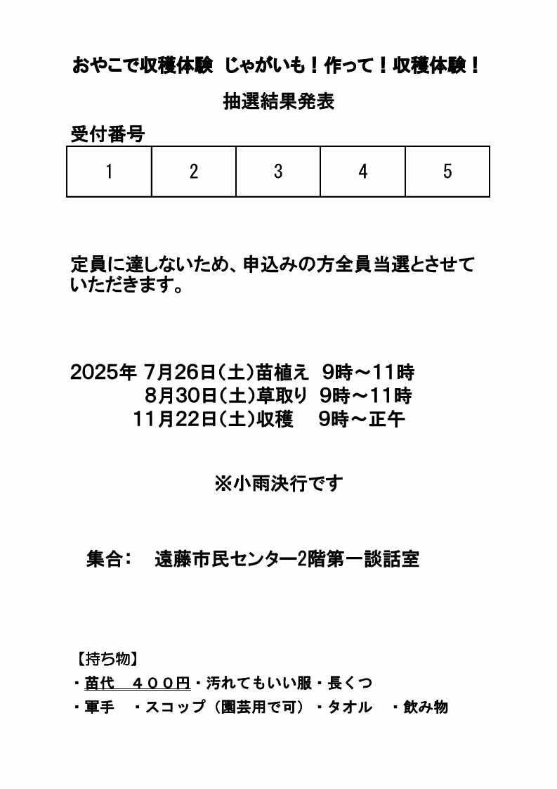 たくさんのお申込みありがとうございました。