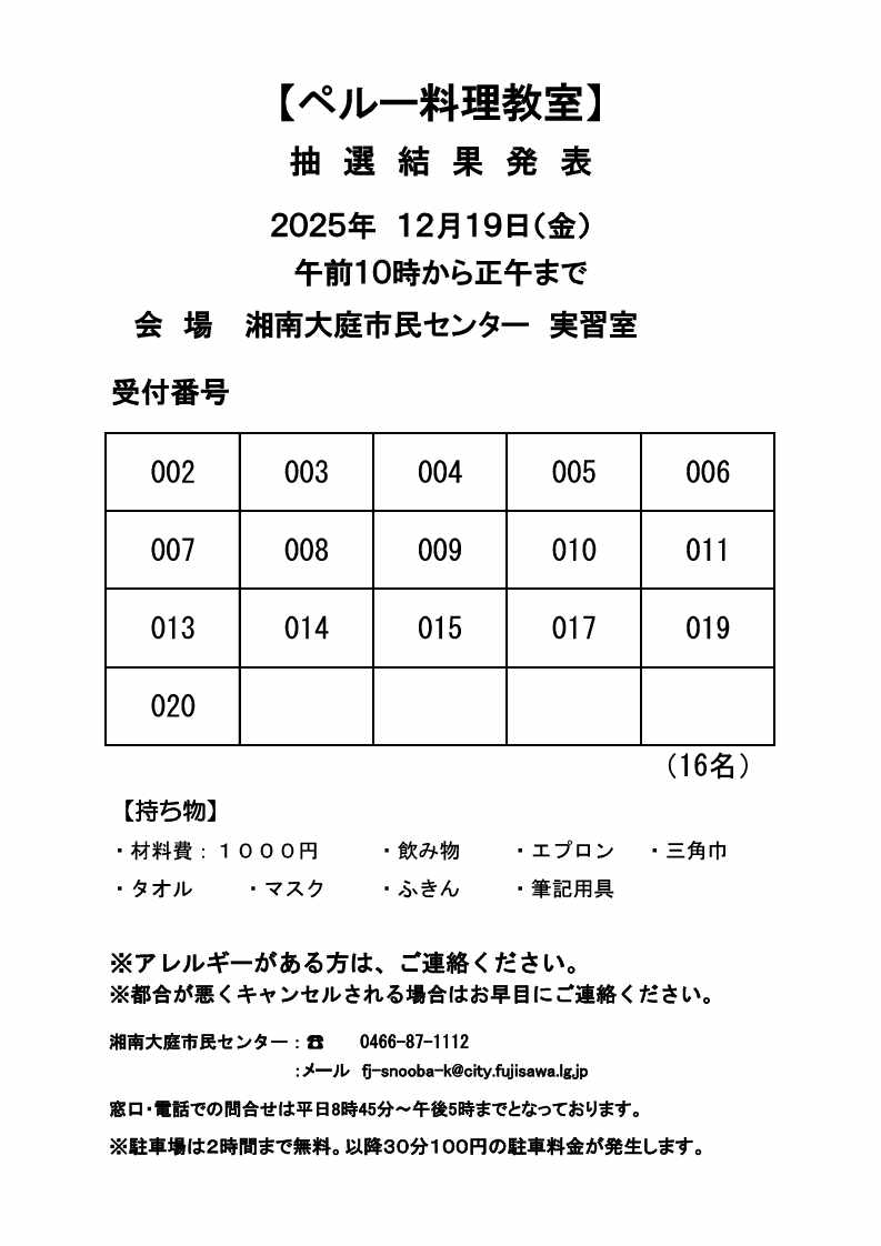 【抽選結果発表】ペルー料理教室