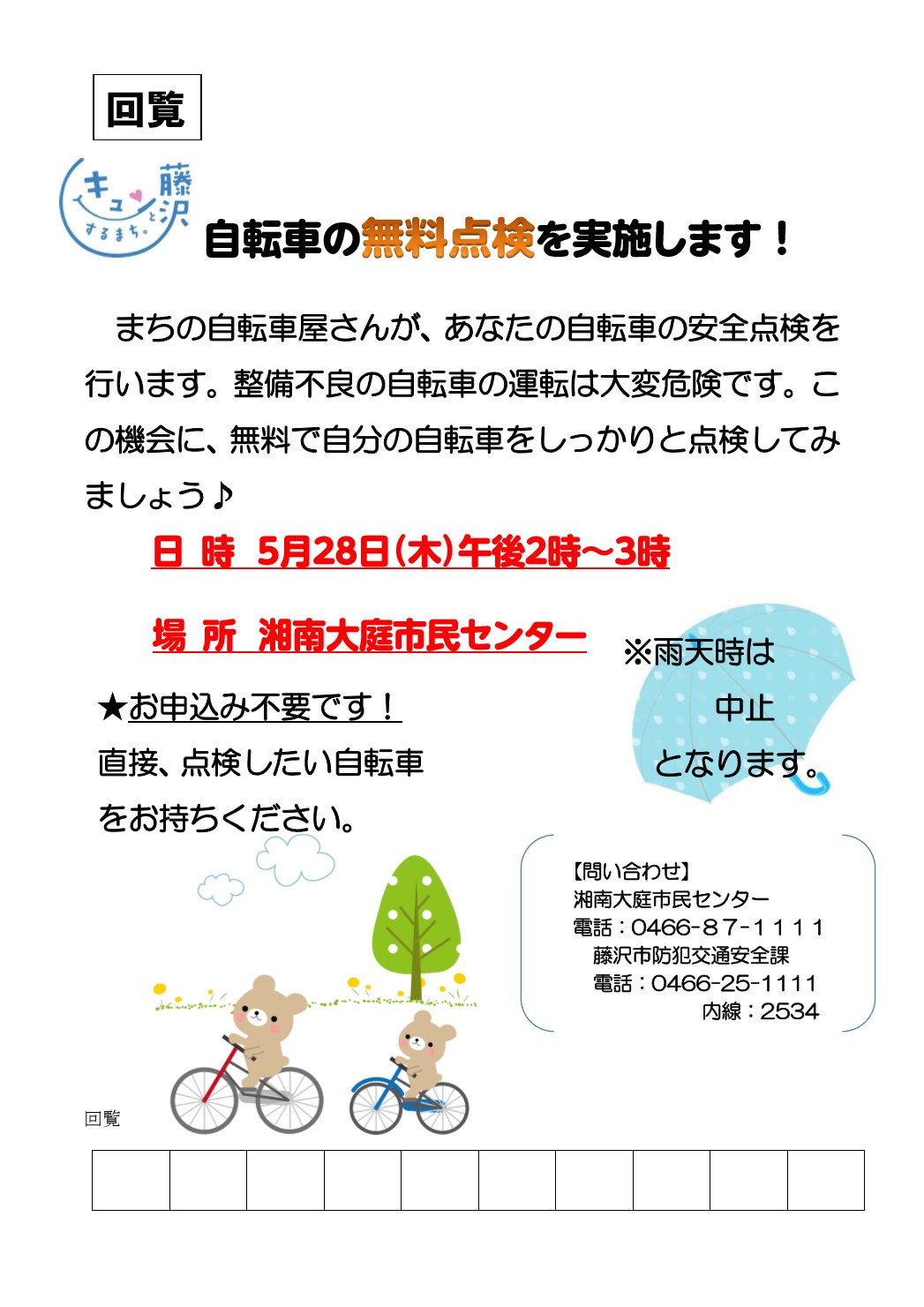 郷土づくり推進会議 活動報告 | 公共施設等の利用案内 | 自転車無料点検 | 出張相談in湘南大庭 |