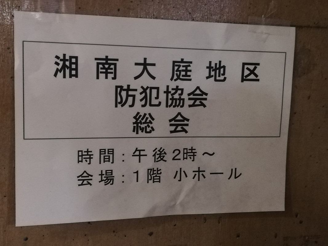 湘南大庭地区防犯協会では、5月17日(土)の午後、市民センター小ホールにて令和7年度の総会を開催しました。冒頭、柳澤防犯協会会長より、今年度のスタートにあたり、“このまちから犯罪者や被害者を出さない、安全なまちを皆で協力して築いていこう”という決意が込められた挨拶が、参集いただいた町内会・自治会の防犯担当役員の皆様に向けて行われました。続いて、以下の5つの年間事業報告、年間事業計画および予算について、役員より詳細な説明がなされ、質疑応答ののち、いずれの項目も原案通りに承認されました。最後に、大塚市民センター長より、新任を含む本年度の事務局の紹介を交えたご挨拶をいただき、滞りなく総会を終了いたしました。