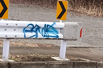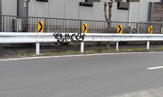 2月12日(木)舟地蔵公園裏側道路のガードレールにペンキで書かれた落書きを消しました。