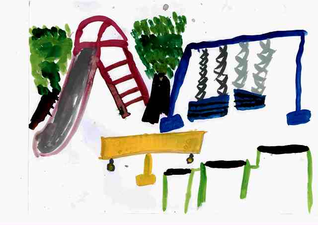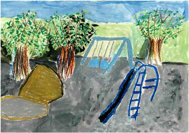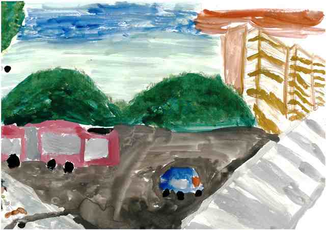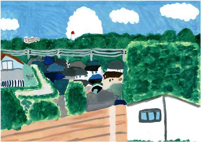 小糸小学校の子どもたちの作品 お気に入りの場所 この町のヒーローのいる場所 交番 お気に入りの坂 台谷公園であそんでいるところ ひみつきちとぼく いえの近くの神社 緑豊かなけしき おもいでのこうえん きれいなゆうぞら 大庭城址と秋の空