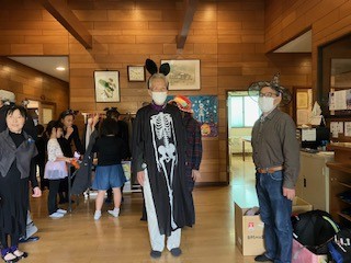 こまよせ市民の家で仮装した見守る人たちが迎える中、放課後に子どもたちが続々と集まり、