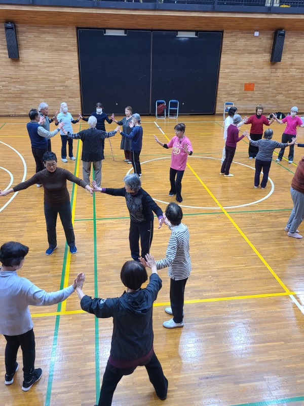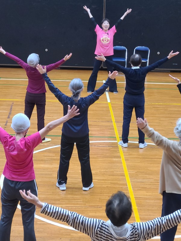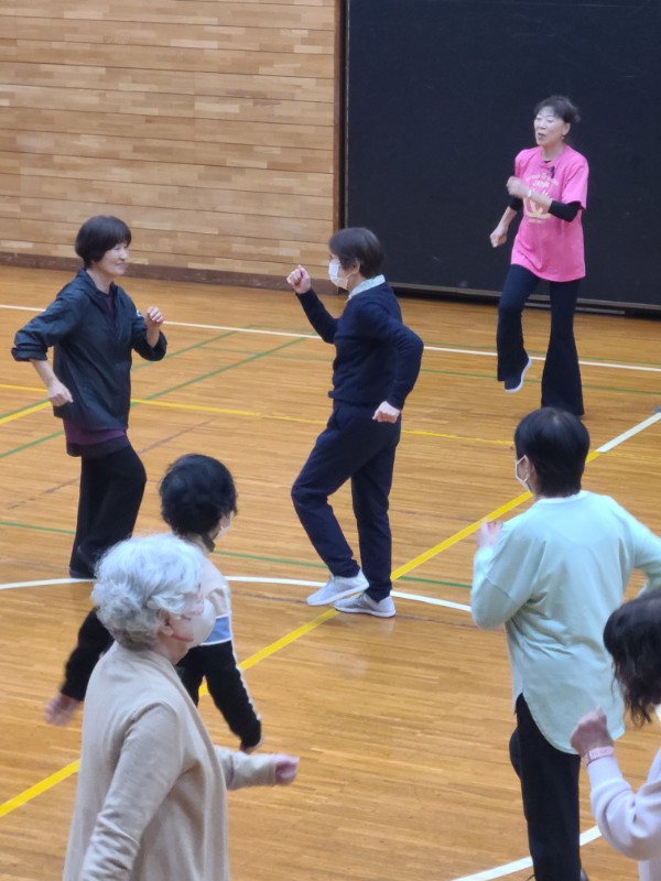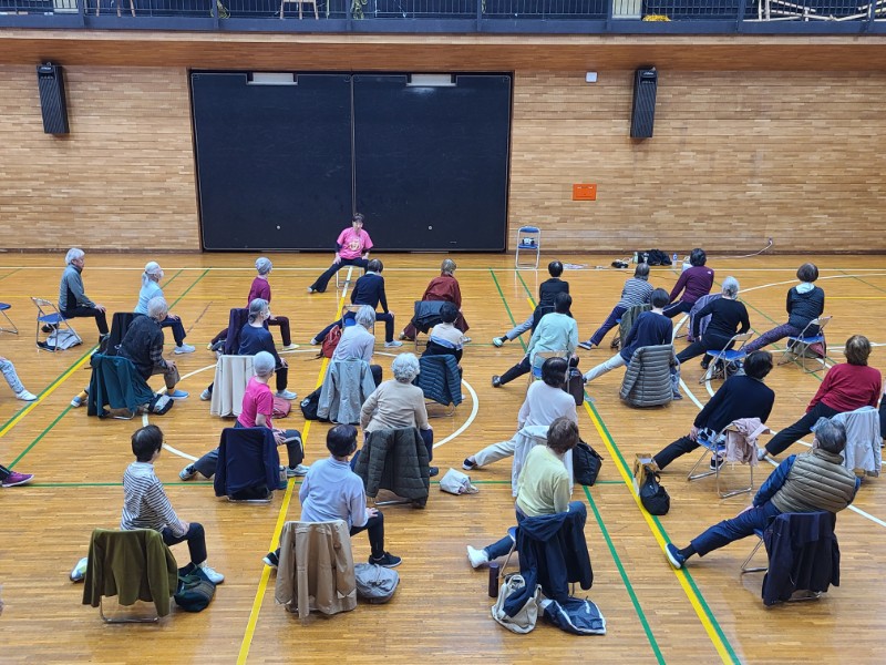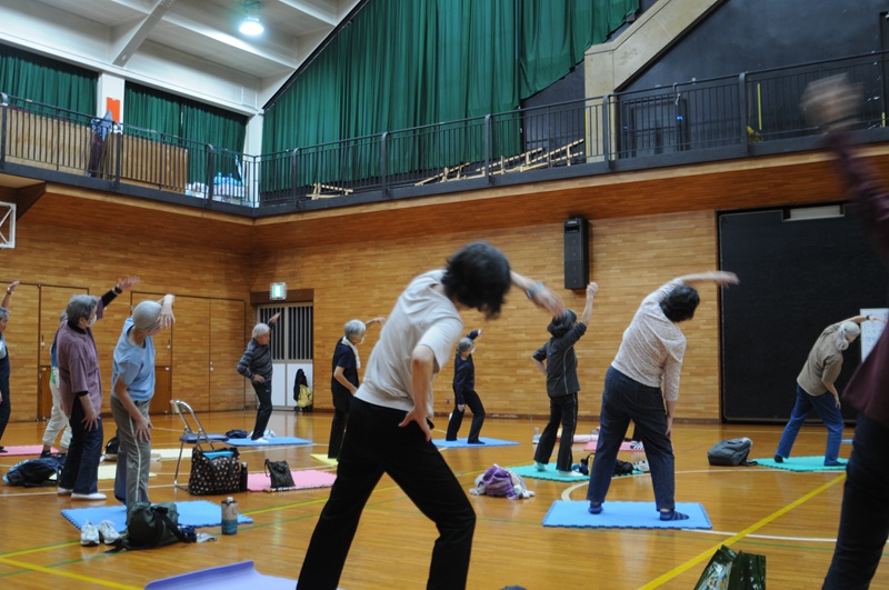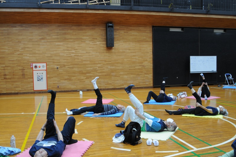 第二回の「シニアリズム体操」は、相良先生の楽しく思わず微笑んでしまうお話とメリハリのあるリズムに合わせた運動に、皆さんは和気あいあいとした雰囲気の中で心地よい汗を流しているように見えました。