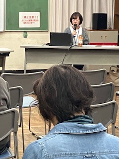 講師の菊池美佳所長 パワーポイント説明 熱心に聴き入る参加者