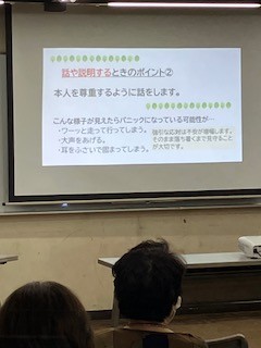移動して落ち着かせることなど基本的な対応について説明していただきました。