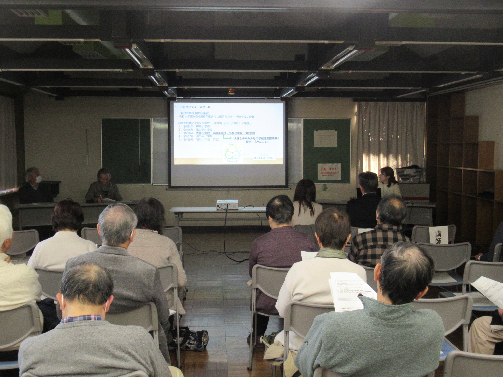 特に、大庭中学校に開設した「みんコミカフェ Cocon」(不登校傾向の生徒や保護者の居場所・相談窓口)の活動紹介や学校公開ツアー(小学生の保護者が中学校を見学する)などの活動紹介がありました。