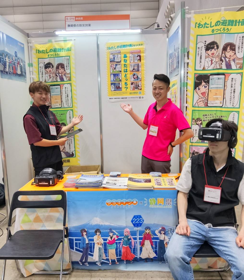 静岡県のブース展示では、静岡県の防災・減災の取り組みを知ってもらい、来場者にVRゴーグルで災害を疑似体験してもらうブースを出展しました!
