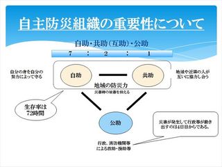 「自分達の地域は自分で守る」という自覚、連帯感に基づき、自主的に結成する組織であり、災害による被害を予防し、軽減するための活動を行う組織。