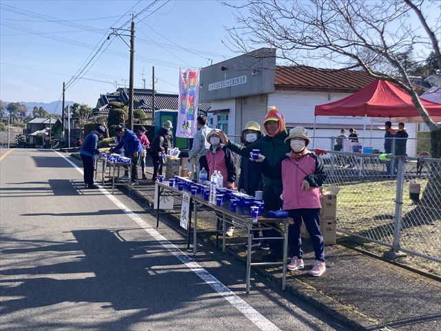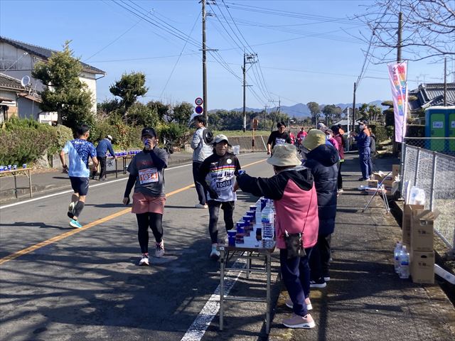 3月8日(日)晴れ、クラブスタッフ11名は消防団詰所前で絶景マラソンの給水ボランティア活動を行った。ハーフ、10k、5kのランナーが駆け抜けた。給水ボランティア(ウオーキングクラブ)はベテラン揃いテキパキとスムーズにリズムよく活動が進んだ。手の空いたスタッフは一生懸命に応援!! 急ごしらえの鳴り物でも応援。沿道の応援する市民が少ないのが少し残念だ。