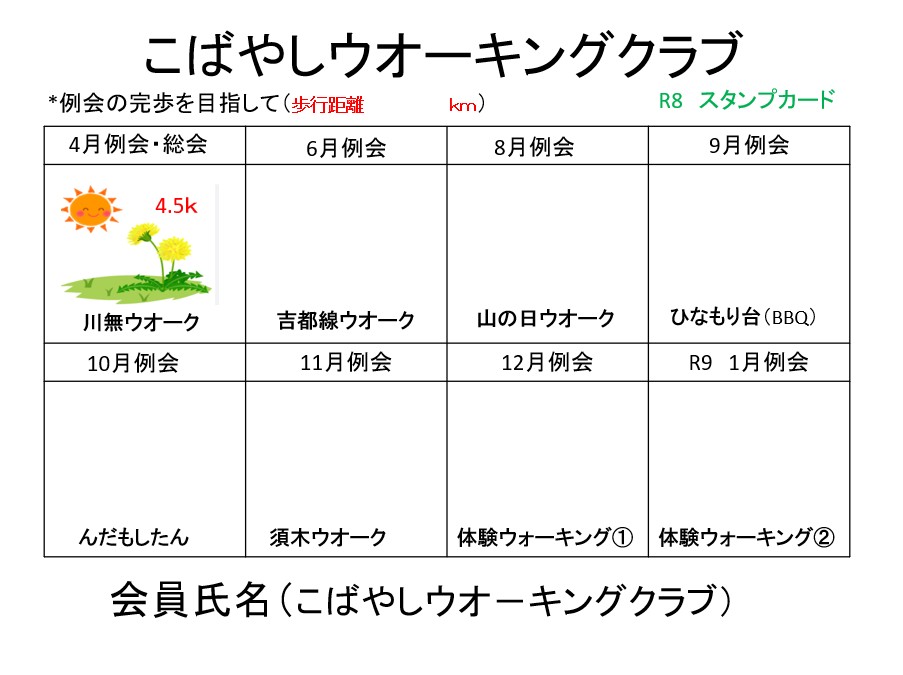 ・希望者は、当日一緒にウオーキングに参加して、入会申込を行ってください