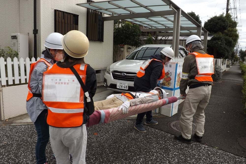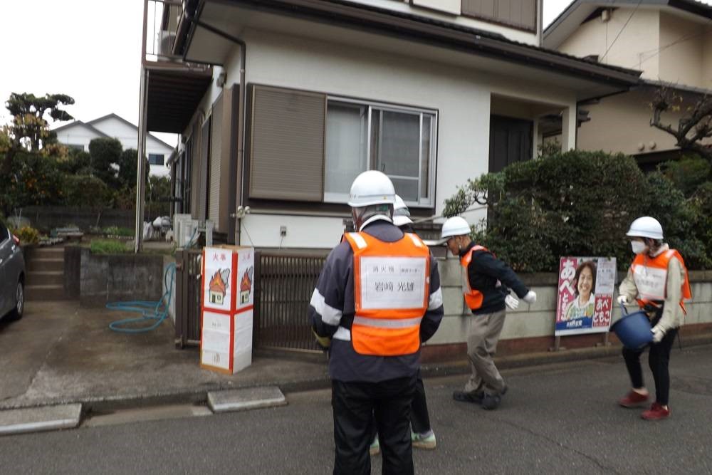 暑い中、リーダー会メンバー、睦、やよい、さつき各自治会役員の方々、消防隊員の方、