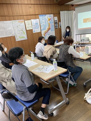 湘南大庭いきいきサポートセンターから、小林、東海林さんが見えて、介護保険の仕組み、申請の方法、サービスの種類、利用の流れ、等々を映像で説明してくださいました。